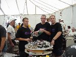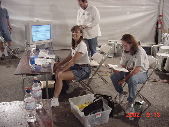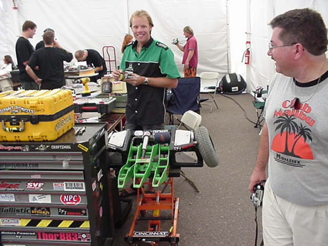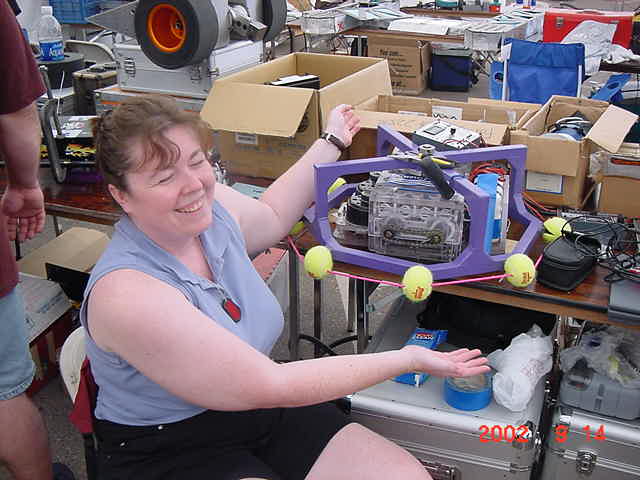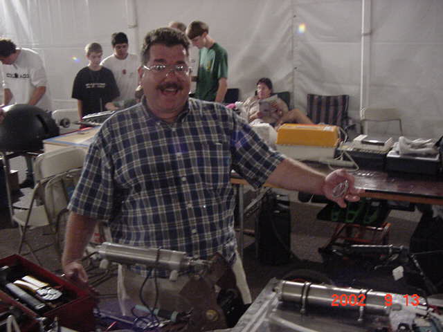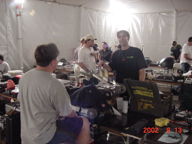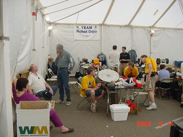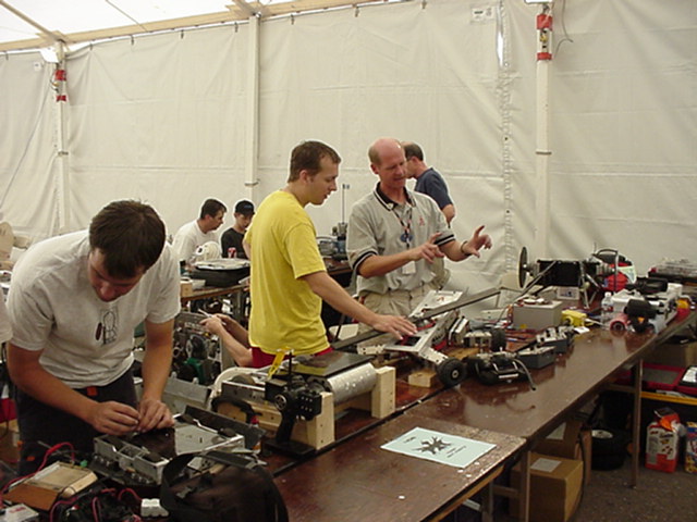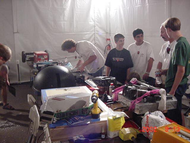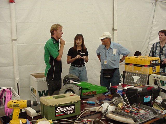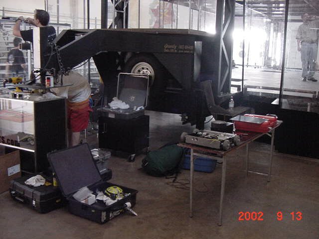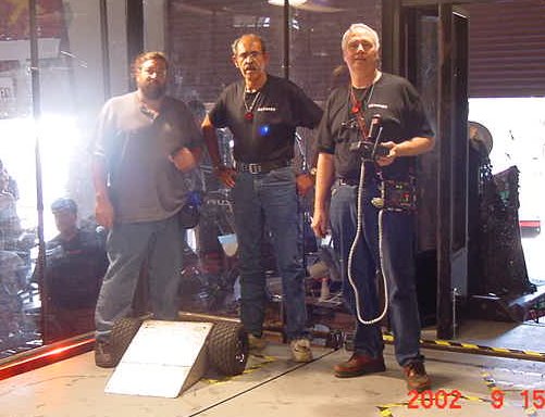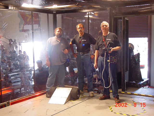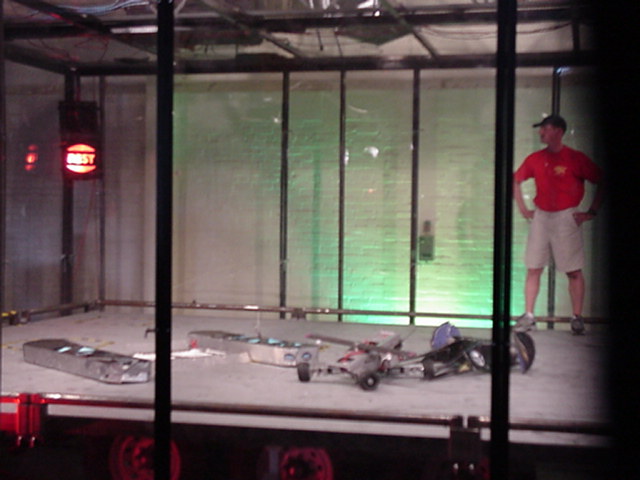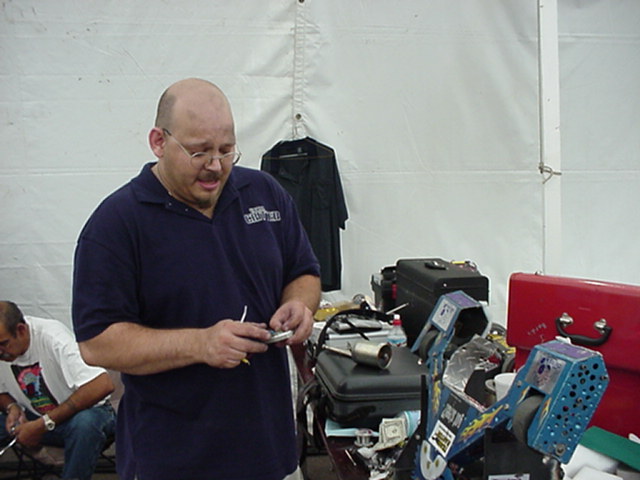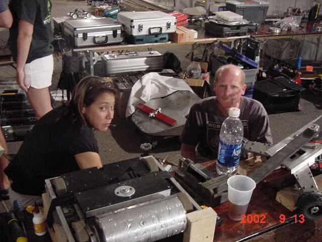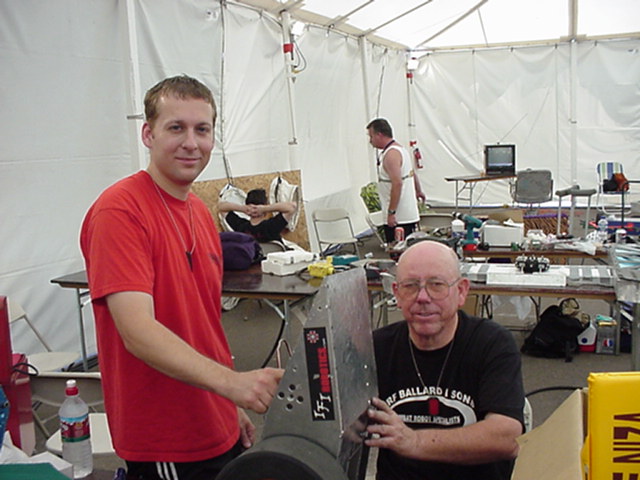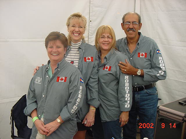 Fortunately Besides Becky-the-bot-Mom, I had my twin sister Ricky and her husband Dan Juanillo there as pit crew, and as an added bonus, Tim and Loreen McTigue, who I met at Robot Wars in England, came up from Yuma, AZ to also be on the team. Unfortunately, when cameras were present they seemed to be in other locations. With these husky men around, the ladies could sit back and gossip about their new roles as bot-widows.