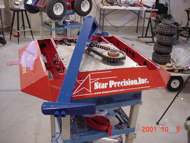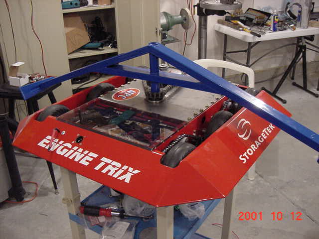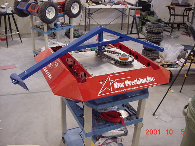 Battlebots 4.0 Because it has the same four motor drive train as Pyramidroid, it is a good push-bot if the spinner fails.