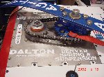 The chassis is made out of laser cut Stainless steel (instead of Cold Rolled steel) and TIG welded into place using 'slot and tab' construction for precision alignment of the various parts. All parts were powder-coated with my standard race team colors.